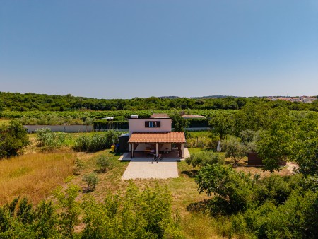Kleines Haus auf großem Privatgrundstück (1300 m²), nur 1,2 km zum Strand und etwa 4 km nach Pula