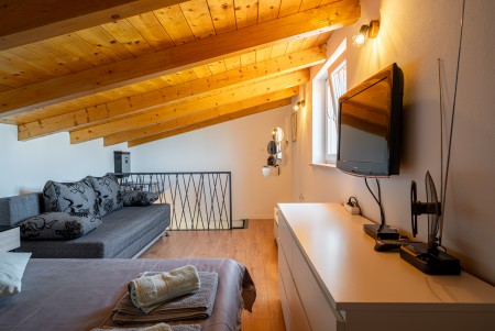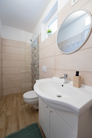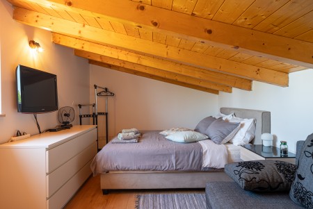 Das einfach eingerichtete Naturhäuschen liegt in einem ruhigen Vorort von Pula, nur 1,2 km vom nächsten Strand und ca. 4 km vom historischen Stadtzentrum entfernt. Pula erwartet seine Besucher mit zahlreichen Sehenswürdigkeiten, Restaurants, Ausgeh- und Einkaufsmöglichkeiten. Das bekannteste Denkmal und Wahrzeichen der Stadt ist die beindruckende Arena, ein Amphitheater aus der Römerzeit, das nicht nur besichtigt werden kann, sondern auch als einmalige Freiluftbühne für Konzerte und Filmveranstaltungen dient. Nur wenige Autominuten entfernt liegt das Fischerörtchen Fažana, von wo aus Ausflugsboote zum Nationalpark der Brijuni-Inseln fahren, die in jedem Fall einen Besuch wert sind. Restaurant und Einkaufsmöglichkeit befinden sich in fußläufiger Entfernung.