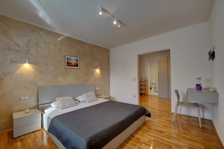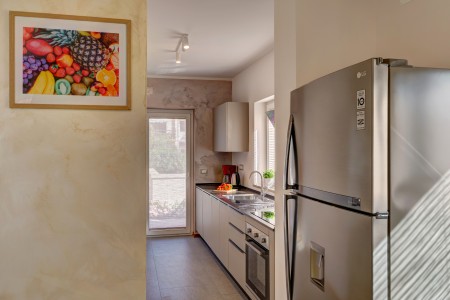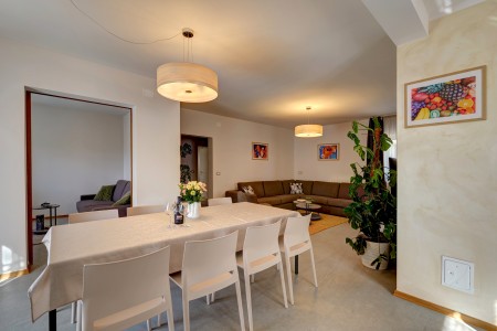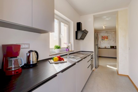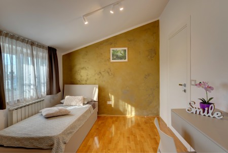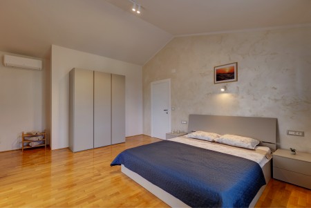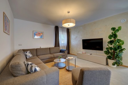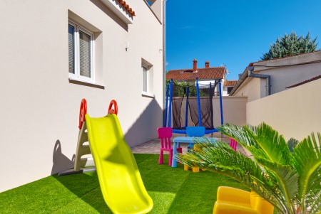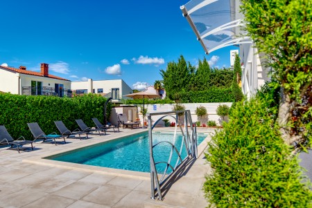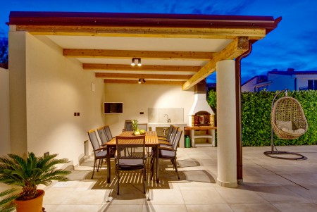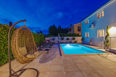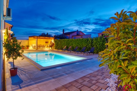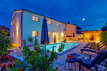 Die moderne, freistehende Villa mit vier Schlafzimmern liegt in Štinjan, einem ruhigen Vorort von Pula, nur 850 m vom nächsten Badestrand und 3 km vom historischen Stadtzentrum entfernt. Pula erwartet seine Besucher mit zahlreichen Sehenswürdigkeiten, Restaurants, Ausgeh- und Einkaufsmöglichkeiten. Das bekannteste Denkmal und Wahrzeichen der Stadt ist die beindruckende Arena, ein Amphitheater aus der Römerzeit, das nicht nur besichtigt werden kann, sondern auch als einmalige Freiluftbühne für Konzerte und Filmveranstaltungen dient. Nur wenige Autominuten von Pula entfernt liegt das Fischerörtchen Fažana, von wo aus Ausflugsboote zum Nationalpark der Brijuni-Inseln fahren, die in jedem Fall einen Besuch wert sind. Neben zahlreichen Ausflugs- und Unterhaltungsmöglichkeiten erwartet Sie eine komfortable Villa mit vier Schlafzimmern und ein gepflegter Außenbereich mit privatem Pool (4 x 7 m), Sonnenterrasse, bequemen Liegen und Grillplatz. Die jüngsten Gäste dürfen sich auf einen eigenen Spielplatz mit Trampolin, Schaukel, Rutsche und Klettergerüst freuen. Das gesamte Grundstück steht Ihnen zur alleinigen Nutzung zur Verfügung. Restaurant und Einkaufsmöglichkeit befinden sich in fußläufiger Entfernung.