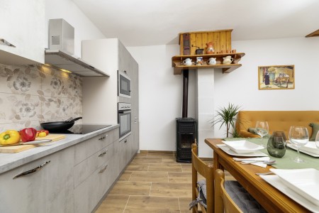 Die Familie Gržetić beschäftigt sich schon seit jeher mit der Landwirtschaft. Auf mehreren tausend Quadratmetern Land beschäftigen sie sich mit Olivenanbau und stellen selbst Olivenöl her. Freilaufende Hühner legen frische Eier. Ein idealer Ort der Erholung und der Ruhe. Das Ferienhaus besteht aus zwei Teilen, mit jeweils eigenem Eingang an der Vorder- bzw. Rückseite des Gebäudes sowie einem separaten Appartement für zwei Personen. Die Häuser und das Appartement können sowohl einzeln, als auch gemeinsam gemietet werden.
