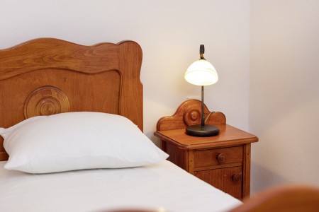 Haus 2 für 6 Personen: ca. 90 m² auf zwei Etagen (Split-Level). Klimaanlage im Eingangsbereich/Vorraum. Im ersten Stock große überdachte Terrasse mit Tisch, Bänken und Liegestühlen, moderne Wohnküche mit Eingang über die Terrasse, von der aus Sie auch in den ein paar Stufen höher liegenden Schlafbereich gelangen. Zwei Schlafzimmer mit Doppelbett, zwei Schlafzimmer mit Einzelbett und zwei Badezimmer mit Dusche und WC.