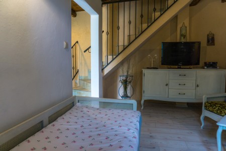 Sonstiges: WiFi-Internet kostenlos verfügbar. Kostenloser Parkplatz für 2 PKW auf dem Grundstück. Kostenlose Nutzung der Waschküche mit Waschmaschine neben dem Haus. Die letzten 200 m bis zum Haus führen über eine nicht-asphaltierte Straße. Bei Ihren Vermietern können Sie auf Wunsch hausgemachte Produkte wie Olivenöl, Eier, Wein und Marmelade aus eigener Herstellung kaufen. In Absprache mit den Gastgebern und je nach Verfügbarkeit können zudem traditionelle einheimische Gerichte zum Abendessen vor Ort auf Anfrage gebucht werden.