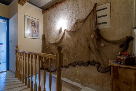 Das gemütlich eingerichtete Haus liegt in Banjol auf der wunderschönen Insel Rab. Gleichermaßen für einen Urlaub mit der Familie, ganz romantisch zu zweit oder einen Aufenthalt mit Kindern geeignet, befindet sich das Haus Angeli nur 600 m vom Strand entfernt. Neben einer einmaligen Flora und Fauna erwarten Sie zahlreiche ausgeschilderte Radwege und malerische Wanderpfade, die zu den wildromantischen, naturbelassenen Stränden der Insel führen. Ein Restaurant und eine Einkaufsmöglichkeit sind etwa 500 m entfernt. Alles Weitere für den täglichen Bedarf finden Sie im 3,5 km entfernten Städtchen Rab. In ca. 12 km Entfernung, in Lopar, liegt der bekannte Sandstrand Rajska plaža („Paradiesstrand“), der etwas weniger als 2 km lang ist und verschiedene Aktivitäten im Freien sowie Wassersportmöglichkeiten bietet. Nach einem erlebnisreichen Tag am Strand oder in der Natur lädt die Terrasse des Hauses zum Entspannen und Grillen ein.