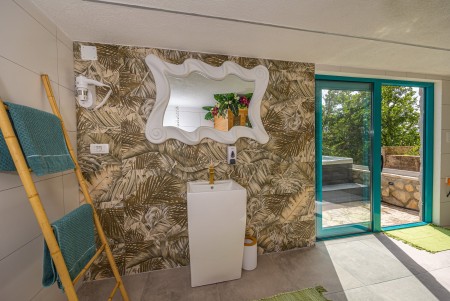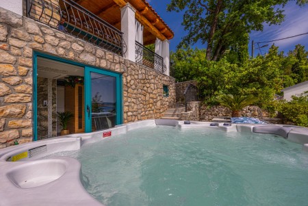 Jadranovo ist ein kleines Dorf auf dem Festland, gegenüber der bekannten Insel Krk und etwa 11 Kilometer von der Stadt Crikvenica entfernt. Das freistehende Haus verfügt über drei Schlafzimmer, bietet Platz für bis zu sechs Personen und ist charmant und gemütlich eingerichtet. Es eignet sich gleichermaßen für einen Urlaub mit der Familie, einen romantischen Aufenthalt zu zweit oder auch mit Hund. Das Palmhouse liegt nur 100 m vom Strand entfernt und bietet direkten Meerblick. Im Außenbereich erwartet Sie eine Meerblick-Terrasse mit Whirlpool, während im Erdgeschoss eine Infrarotsauna zur Entspannung zur Verfügung steht. Wenn Sie im Urlaub aktiv sein möchten, gibt es in der Region Crikvenica Riviera mehrere Rad- und Wanderwege. Die nächste Einkaufsmöglichkeit ist ca. 200 m entfernt und ein Restaurant finden Sie in etwa 1 km Entfernung.