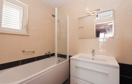 Die Villa befindet sich im nordwestlichen Teil der Insel Rab, in Supetarska Draga, einem der ältesten Orte der Insel. Mit ihren gemütlich eingerichteten Räumen und vier Schlafzimmern bietet die Villa Platz für bis zu acht Personen. Im Außenbereich erwartet Sie eine überdachte Terrasse, ein privater Pool (3,8 x 5,3 m), Sonnenliegen und ein Grillplatz – der ideale Ort, um die warmen Tage und lauen Abende in vollen Zügen mit Familie oder Freunden zu genießen. Neben einer einmaligen Flora und Fauna erwarten Sie zahlreiche ausgeschilderte Radwege und malerische Wanderpfade, die zu den wildromantischen, naturbelassenen Stränden der Insel führen. In etwa 8 km Entfernung, in Lopar, liegt der bekannte Sandstrand Rajska plaža („Paradiesstrand“), der etwas weniger als 2 km lang ist und verschiedene Aktivitäten im Freien sowie Wassersportmöglichkeiten bietet. Das nächste Restaurant ist ca. 500 m entfernt und eine Einkaufsmöglichkeit finden Sie in etwa 1,5 km Entfernung.