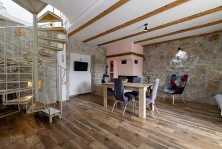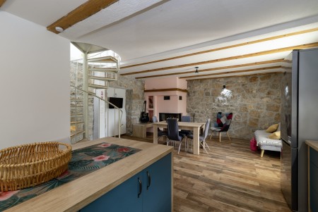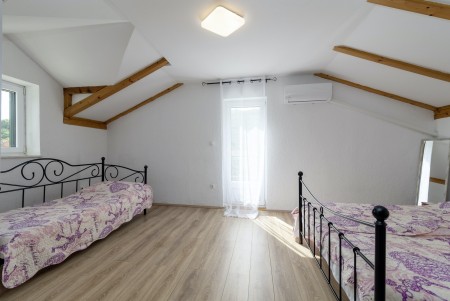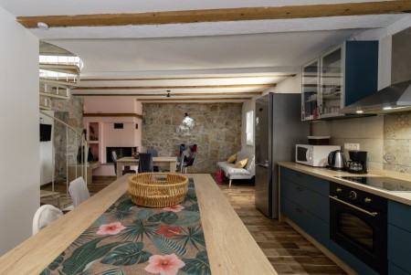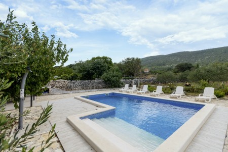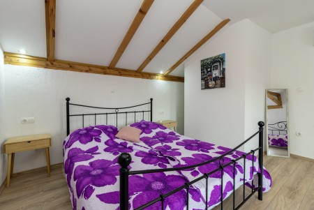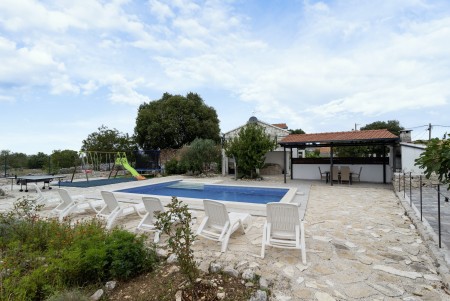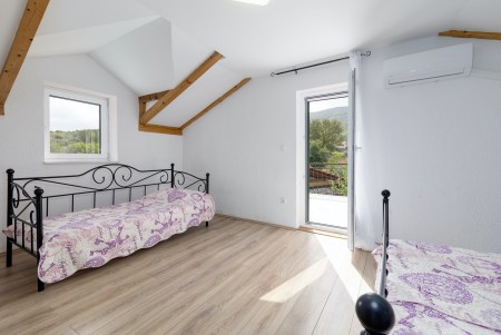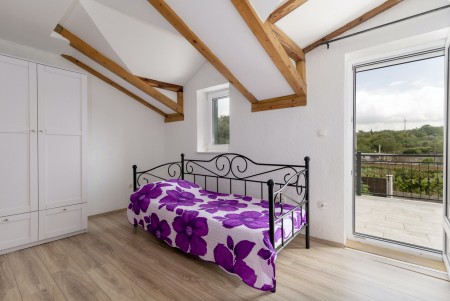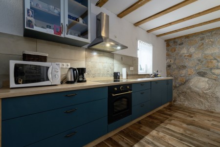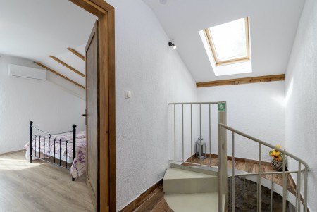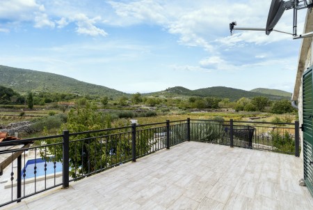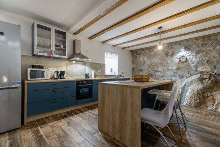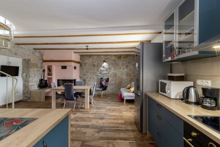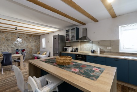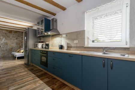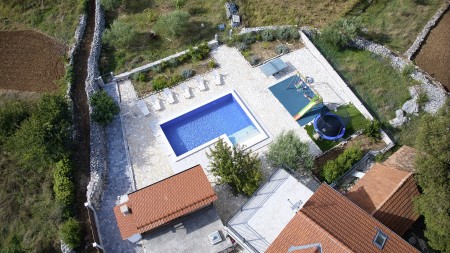 Die Ferienvilla mit zwei Schlafzimmern liegt im gebirgigen Hinterland Mittel-Dalmatiens, nur 20 Autominuten vom Meer entfernt. Von typisch mediterraner Landschaft umgeben, genießt man vom Grundstück aus ein einmaliges Panorama auf endlose Weinberge, Felder, Wälder und Wiesen, welche die bezaubernde Berglandschaft überziehen. Während die Villa Emanuel eine Oase der Ruhe abseits der Touristenströme bietet, sind die lebhaften Küstenorte, wie Trogir und Šibenik mit ihren zahlreichen Stränden, Unterhaltungsmöglichkeiten und kulturhistorischen Sehenswürdigkeiten in ca. 20-30 Autominuten erreichbar. Eine Einkaufsmöglichkeit und ein Restaurant sind ca. 3 km entfernt.