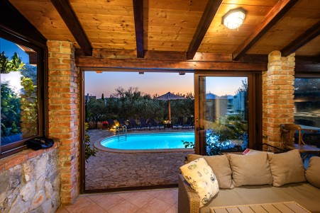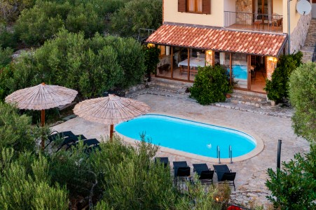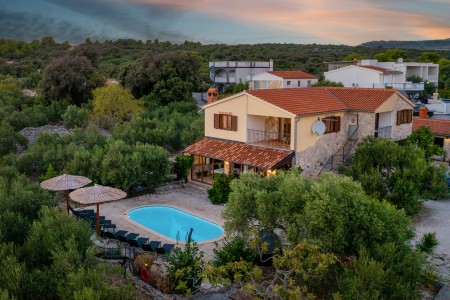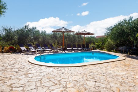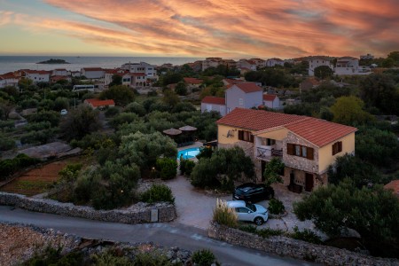 Die komfortable Ferienvilla für 16 Personen liegt in der Nähe von Rogoznica, im Dorf Zečevo Rogozničko, auf einem 2500 m² großen eingezäunten Grundstück, das Ihnen zur alleinigen Nutzung zur Verfügung steht. Die Villa eignet sich ideal für mehrere Familien oder eine größere Gruppe von Freunden, denn sie besteht aus vier separaten Einheiten mit insgesamt 8 Schlafzimmern, die ausschließlich als eine Einheit vermietet werden. Freuen Sie sich auf einen privaten Swimmingpool (7 x 3,5 m) mit Sonnenterrasse, Außendusche und bequemen Sonnenliegen. Eine besondere Annehmlichkeit bietet der separate Wellnessbereich im Garten, der mit einem Whirlpool sowie einem Badezimmer mit Dusche und WC ausgestattet ist. Im nur 2 km entfernten Rogoznica finden Sie zahlreiche Restaurants, Bars, Supermärkte und schöne Spazierwege entlang der Promenade. Besonders bekannt ist Rogoznica für die moderne Marina Frapa sowie den einzigartigen Drachenauge-See („Zmajevo oko“), einen etwa 60 Meter tiefen Salzwassersee, der mit seiner ovalen Form an ein Auge erinnert und zu den interessantesten Naturerscheinungen der Region zählt.