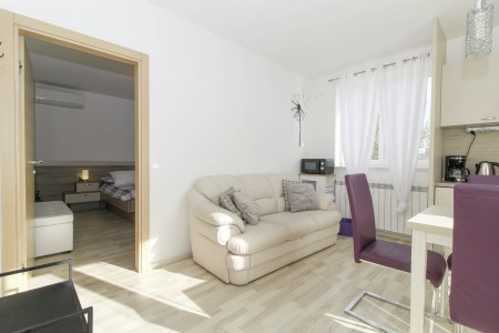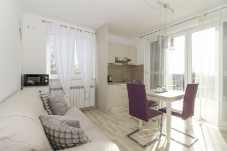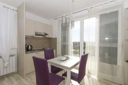 Das Appartement Dali liegt in Sveti Martin im Erdgeschoss eines freistehenden Einfamilienhauses. Dank der vorteilhaften Lage im grünen Hinterland der Halbinsel Istrien eignet sich diese Ferienwohung nicht nur für einen erholsamen Aufenthalt, sondern gleichermaßen als Ausgangspunkt für erlebnisreiche Ausflüge. Die bekannten Küstenorte, wie Opatija, Pula und Rovinj liegen in einem Umkreis von 50 km und sind mit dem Auto leicht zu erreichen. Und wer lieber ohne Auto unterwegs ist, kann die herrliche Landschaft in der Umgebung zu Fuß oder mit dem Fahrrad erkunden. Der nächste Strand befindet sich in Rabac und ist nur 14 km entfernt.