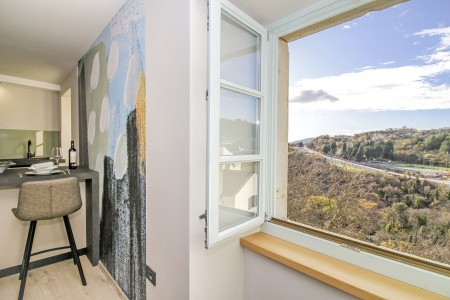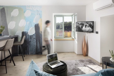 Das Appartement Erna befindet sich in einem historischen Gebäude in der auf einem Berg gelegenen Altstadt von Labin. Komplett neu, komfortabel und schick eingerichtet bietet das Appartement ideale Voraussetzungen für einen Aufenthalt zu zweit in der romantischen Atmosphäre des alten Stadtkerns, ohne auf zeitgemäßen Komfort verzichten zu müssen. In Labin findet man alles für den täglichen Bedarf, denn Restaurants, Bars und Einkaufsmöglichkeiten sind bequem zu Fuß erreichbar. Die herrlichen Kiesstrände von Rabac sowie wildromantische, naturbelassene Badebuchten an der Ostküste Istriens sind mit dem Auto in wenigen Minuten erreichbar. Darüber hinaus eignet sich das Umland von Labin auch für Rad- und Wandertouren durch die immergrüne Landschaft der Halbinsel Istrien.