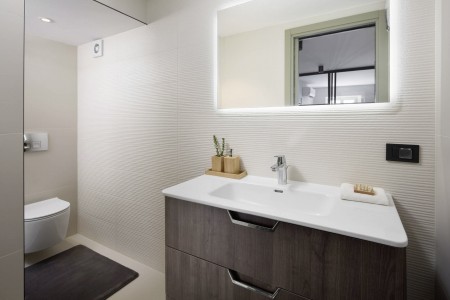 Appartement für 2 Personen: ca. 40 m², in der zweiten Etage. Modern und komfortabel eingerichtet bietet das Appartement einen hellen Wohnraum mit Klimaanlage, gemütlichem Sofa, komplett ausgestatteter Küche und Essbereich. Außerdem, ein Schlafzimmer mit Doppelbett und ein Badezimmer mit Dusche und WC.