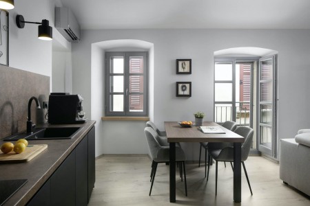 Das Appartement Ginger befindet sich in einem historischen Gebäude in der auf einem Berg gelegenen Altstadt von Labin. Komplett neu, komfortabel und schick eingerichtet bietet das Appartement ideale Voraussetzungen für einen Aufenthalt zu zweit in der romantischen Atmosphäre des alten Stadtkerns, ohne auf zeitgemäßen Komfort verzichten zu müssen. In Labin findet man alles für den täglichen Bedarf, denn Restaurants, Bars und Einkaufsmöglichkeiten sind bequem zu Fuß erreichbar. Die herrlichen Kiesstrände von Rabac sowie wildromantische, naturbelassene Badebuchten an der Ostküste Istriens sind mit dem Auto in wenigen Minuten erreichbar. Darüber hinaus eignet sich das Umland von Labin auch für Rad- und Wandertouren durch die immergrüne Landschaft der Halbinsel Istrien.