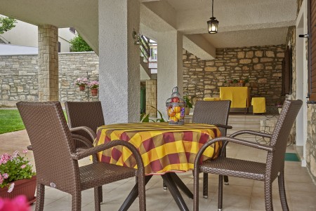 Die komfortable, geschmackvoll eingerichtete Ferienwohnung liegt im Erdgeschoss eines Einfamilienhauses in Ližnjan, einem kleinen Ort an der Südspitze der Halbinsel Istrien. Ližnjan bietet alles für den täglichen Bedarf, denn Restaurant, Einkaufsmöglichkeit und auch der Strand sind zu Fuß erreichbar. Der benachbarte Küstenort Medulin ist nur 2 km entfernt und bietet neben zahlreichen Unterhaltungs- und Ausgehmöglichkeiten einen familienfreundlichen Sandstrand. Neben einer komplett neuen, modernen Ferienwohnung erwartet Sie ein gepflegter Außenbereich mit überdachter Terrasse und liebevoll bepflanztem Garten.