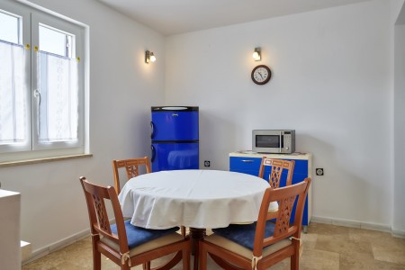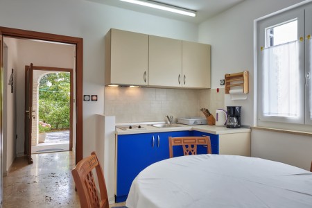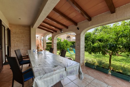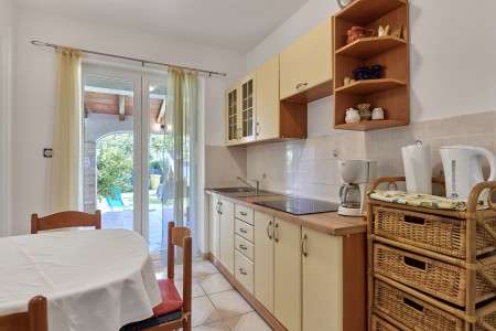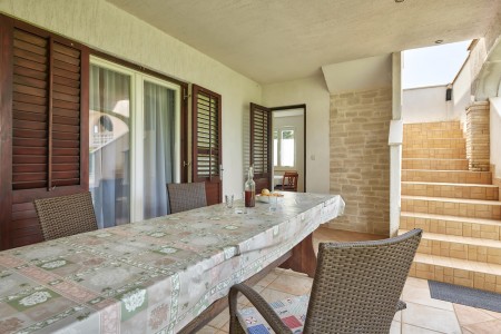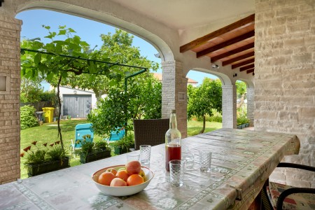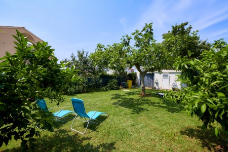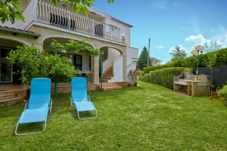 Nur einen fünfzehnminütigen Spaziergang vom Zentrum von Medulin entfernt, liegt das Haus mit drei Ferienwohnungen auf einem gepflegten Grundstück mit Kirsch- und Feigenbäumen, Lorbeer und Rosmarin, Weinreben und Gemüsegarten. Der nächste Naturstrand ist nur 15 Gehminuten entfernt, während sich ein Sandstrand und zahlreiche bewirtschaftete Strände im Umkreis von 800 m bis 5 km befinden und leicht mit dem Auto zu erreichen sind. Zudem bietet dieser vielfältige Küstenabschnitt an der Spitze der Halbinsel Istrien unzählige Badebuchten, die von einer einmaligen Naturlandschaft umrahmt sind.