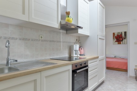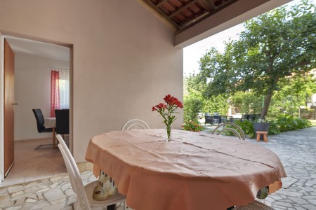 Das Haus mit insgesamt drei Appartements und der Wohnung der Vermieter-Familie befindet sich im Zentrum von Medulin nur 400 Meter vom Meer entfernt. Ideal für diejenigen, die ihr Auto im Urlaub einfach mal stehen lassen möchten, denn von hier aus können Sie wirklich alles zu Fuß erreichen – Einkaufsmöglichkeiten, Restaurants, Cafés, Strand. Ihre Gastgeber wohnen im ersten Stock, zwei Appartements befinden sich im Dachgeschoss und eines in einem ebenerdigen Häuschen im Garten.