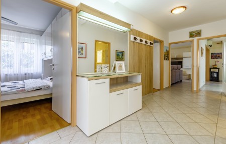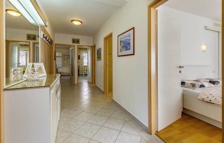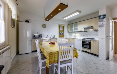Nur einen fünfzehnminütigen Spaziergang vom Zentrum von Medulin entfernt, liegt das Haus mit zwei Ferienwohnungen im Erdgeschoss und der Wohnung der Vermieter in der ersten Etage. Der nächste Naturstrand ist nur 15 Gehminuten entfernt, während sich ein Sandstrand und zahlreiche bewirtschaftete Strände im Umkreis von 800 m bis 5 km befinden und leicht mit dem Auto zu erreichen sind. Zudem bietet dieser vielfältige Küstenabschnitt an der Spitze der Halbinsel Istrien unzählige Badebuchten, die von einer einmaligen Naturlandschaft umrahmt sind. Die berühmte Küstenstadt Pula ist nur 9 km entfernt und in jedem Fall einen Besuch wert. Das bekannteste Denkmal und Wahrzeichen der Stadt ist die beindruckende Arena, ein Amphitheater aus der Römerzeit, das nicht nur besichtigt werden kann, sondern auch als einmalige Freiluftbühne für Konzerte und Filmveranstaltungen dient.