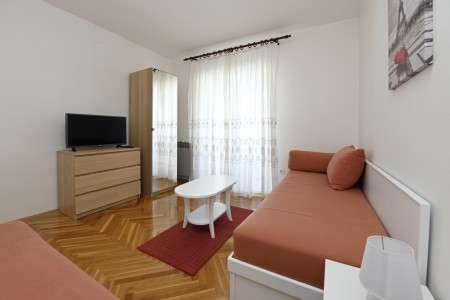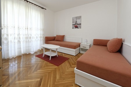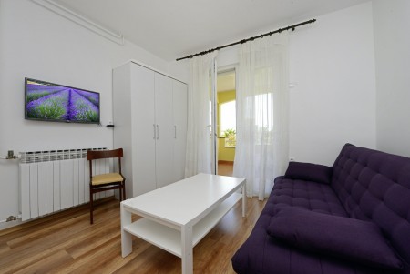 Appartement für 2 Personen AP4: ca. 35 m² in der zweiten Etage. Küche mit Essbereich, Loggia, ein Schlafzimmer mit Doppelbett und Klimaanlage, gemütlich eingerichtetes Wohnzimmer, Badezimmer mit Dusche und WC.
