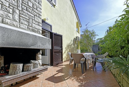Appartement für 4 Personen AP3: ca. 55 m² in der ersten Etage. Küche mit Essbereich, Badezimmer mit Badewanne und WC, zwei Schlafzimmer mit Doppelbett und Klimaanlage, private Terrasse mit Grillkamin und Essbereich im Freien.