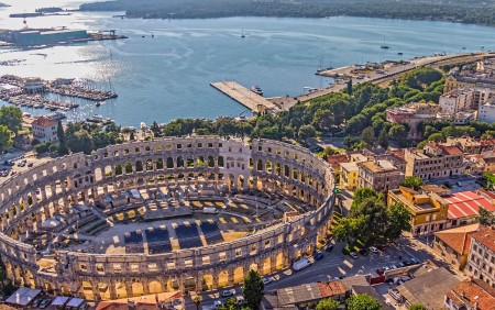 Pula – die ewig junge Stadt. Vor dreitausend Jahren von den Griechen zum ersten Mal erwähnt, hinterließen die Römer hier eines ihrer imposantesten Bauwerke: die Arena – ein Amphitheater für damals 23.000 Zuschauer, von einer 31 m hohen Rundmauer umrahmt. Heute finden hier die „Tage der Antike“, die Filmfestspiele, das „Histria-Festival“, sowie Musikkonzerte und Opernaufführungen statt – die Liste international bekannter Künstler, die in der Arena von Pula auftraten, ist lang: Luciano Pavarotti, Elton John, Manu Chao, Michael Bolton, Sinéad O‘Connor, Sting, Julio Iglesias, Zucchero, Alanis Morisette, Vanessa Mae … Pula hat sich in den drei Jahrtausenden seit seiner Erwähnung zum kulturellen und wirtschaftlichen Mittelpunkt Istriens entwickelt. Das Leben pulsiert nicht nur in der an Sehenswürdigkeiten reichen Altstadt, sondern auch in den neueren Stadtteilen und nicht zuletzt in den Ferienanlagen, die hier in jüngerer Zeit errichtet wurden. Die bekannteste und größte von ihnen ist Punta Verudela auf der gleichnamigen Halbinsel mit Hotels und einer Appartementanlage, einem großen Yachthafen sowie einem kaum überschaubaren Sport- und Unterhaltungsangebot. Ausflugsmöglichkeiten: Venedig, Nationalpark Plitvicer Seen, Nationalpark Brijuni, Kanu-Safari, Jeep-Safari, Fischpicknick, Istrien-Tour, die Adelsberger Grotten und das Lipizzaner Gestüt in Slovenien.Für Ihren Urlaub in Kroatien im Ort Pula in Istrien finden Sie bei uns eine sorgfältig getroffene Auswahl an Übernachtungsmöglichkeiten. Neben Hotels können auch Appartements, Ferienwohnungen und Mobilheime in Pula und Umgebung gebucht werden.