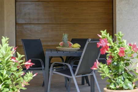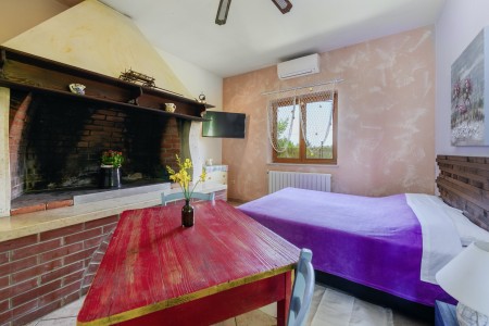 Studio für 2 Personen: ca. 30 m² im Erdgeschoss, mit eigenem Eingang und privater Terrasse (ca. 20 m²). Wohn-/Schlafraum mit Doppelbett, Klimaanlage und Kochnische sowie ein Badezimmer mit Dusche und WC.