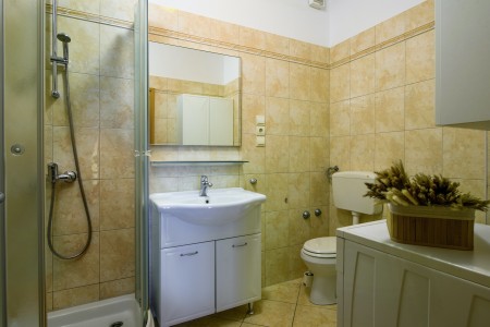 Das freistehende Haus mit zwei Ferienwohnungen, komplett eingezäuntem Garten und der privaten Wohnung der Vermieter erwartet Sie in ruhiger Lage von Pula, nur 7 km vom nächsten Badestrand und 3 km vom historischen Stadtzentrum entfernt. Pula bietet seinen Besuchern zahlreiche Sehenswürdigkeiten, Restaurants, Ausgeh- und Einkaufsmöglichkeiten. Das bekannteste Denkmal und Wahrzeichen der Stadt ist die beindruckende Arena, ein Amphitheater aus der Römerzeit, das nicht nur besichtigt werden kann, sondern auch als einmalige Freiluftbühne für Konzerte und Filmveranstaltungen dient. Nur 10 Autominuten von Pula entfernt liegt das Fischerörtchen Fažana, von wo aus Ausflugsboote zum Nationalpark der Brijuni-Inseln fahren, die in jedem Fall einen Besuch wert sind. Restaurant und Einkaufsmöglichkeit befinden sich in fußläufiger Entfernung.