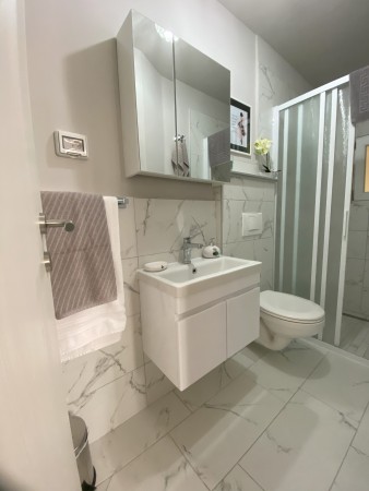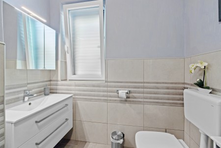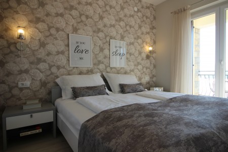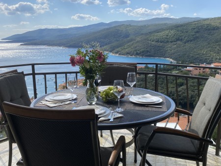 Rabac ist ein beliebter Ferienort an der Ostküste Istriens, bekannt für sein klares Meer, gepflegte Kiesstrände und eine angenehme, entspannte Atmosphäre. Entlang der Promenade finden sich Cafés, Restaurants und kleine Geschäfte, während zahlreiche Badebuchten ideale Bedingungen für einen erholsamen Badeurlaub bieten. In der Umgebung von Rabac lädt die historische Altstadt von Labin mit ihrem ehemaligen Bergwerk zu einem interessanten Ausflug ein. Auch das grüne istrische Hinterland ist schnell erreichbar und ergänzt den Aufenthalt in Rabac mit abwechslungsreichen Ausflugsmöglichkeiten. Darüber hinaus eignet sich das Umland von Labin auch für Rad- und Wandertouren durch die immergrüne Landschaft der Halbinsel Istrien. Die Apartments befinden sich in einem höher gelegenen Teil von Rabac. Jedes Apartment verfügt über zwei Schlafzimmer und bietet von der Terrasse einen Meerblick. Das nächste Restaurant sowie eine Einkaufsmöglichkeit befinden sich in etwa 500 m Entfernung.