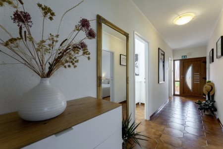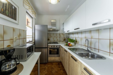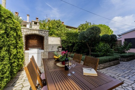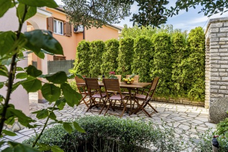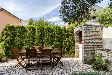 Das gepflegte Haus mit zwei Ferienwohnungen liegt wenige Gehminuten von der Altstadt von Rovinj entfernt in einer ruhigen Straße, umgeben von grüner mediterraner Landschaft. Das malerische Rovinj gilt als die schönste Stadt der Halbinsel Istrien. Zum Haus gehört ein Garten mit Grillplatz, der den Gästen des Hauses zur gemeinschaftlichen Nutzung zur Verfügung steht. In der Nähe befinden sich Tennisplätze, der Waldpark "Zlatni Rt" und zahlreiche Buchten mit herrlichen Stränden, die man gut zu Fuß erreichen kann. Die vorteilhafte Lage des Hauses bietet die besten Voraussetzungen für einen erholsamen Badeurlaub, kombiniert mit allen Annehmlichkeiten einer mediterranen Küstenstadt. Wer nicht nur am Strand faulenzen möchte, sondern auch an Kunst, Kultur und Geschichte interessiert ist, der wird in Rovinj viel zu entdecken haben. Darüber hinaus gibt es in der Umgebung herrliche Spazierwege, die am Meer entlang führen und Wanderwege durch die bezaubernde Natur der Halbinsel Istrien.