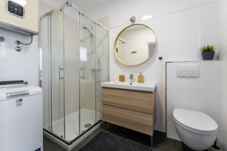 Appartement für 4-6 Personen: ca. 100 m² in der ersten Etage mit eigenem Eingang. Zwei komfortable Schlafzimmer mit Doppelbett und Klimaanlage, zwei Badezimmer mit Dusche und WC, komplett ausgestattete Küche und Essbereich, Balkon mit Tisch und Stühlen. Des Weiteren, ein Wohn-/Schlafraum mit Klimaanlage, Couch und zwei Einzelbetten, der durch eine Schiebetür mit dem Essbereich verbunden ist.