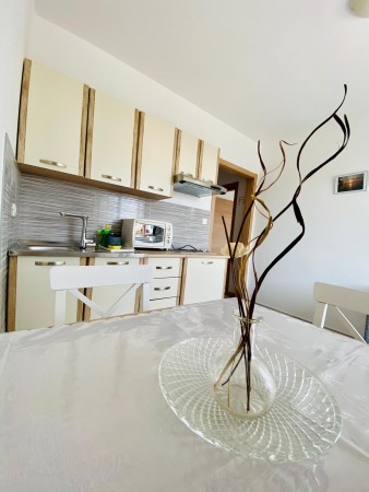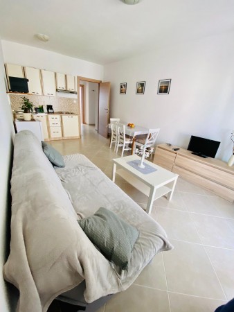 Appartement für 2-3 Personen AP1: ca. 55 m², in der zweiten Etage. Besteht aus einem Wohnraum mit Küchenzeile und Essecke, Klimaanlage und Ausgang zum Balkon, einem Schlafzimmer mit Doppelbett und einem Zustellbett, geeignet für ein Kind bis 11,99 Jahre, sowie einem Badezimmer mit Dusche und WC.