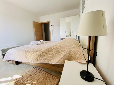 Appartement für 2-3 Personen AP2: ca. 50 m², in der zweiten Etage. Es besteht aus einem Wohnraum mit Couch mit Schlafmöglichkeit für eine Person, Küchenzeile mit Essecke, Klimaanlage und Ausgang zum Balkon, einem Schlafzimmer mit Doppelbett sowie einem Badezimmer mit Dusche und WC.