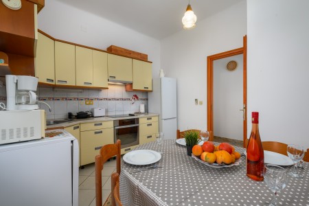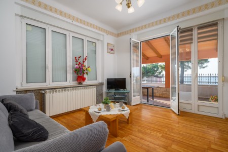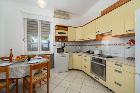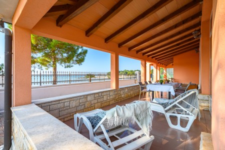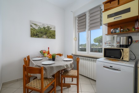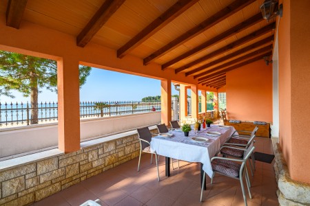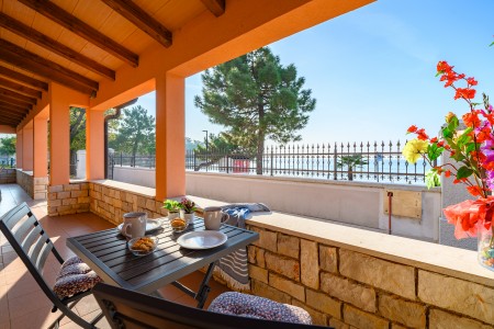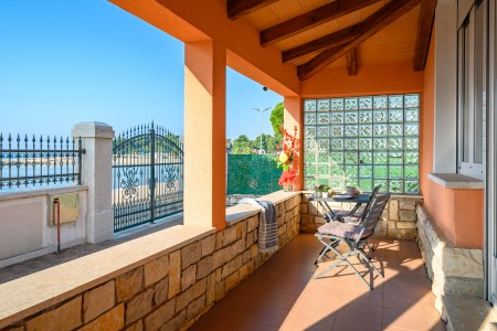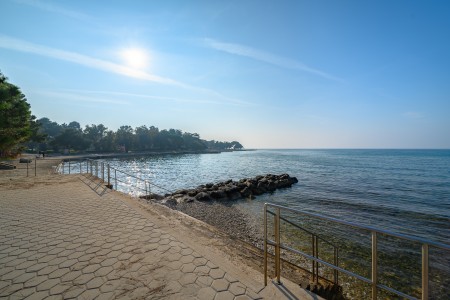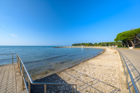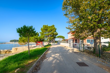 Die Ferienwohnung befindet sich im Erdgeschoss eines Einfamilienhauses in erster Reihe zum Meer, während der nächste Strand nur 20 Meter entfernt ist. Die überdachte Terrasse mit Sitzgarnitur und direktem Meerblick ist ideal, um die warmen Tage und lauen Abende in vollen Zügen zu genießen. Umag ist eine Stadt an der Nordwestküste Istriens, nur 15 km von der slowenischen Grenze entfernt und der westlichste Ort in der Republik Kroatien. Die Lage der Wohnung bietet die besten Voraussetzungen für einen erholsamen und zugleich abwechslungsreichen Urlaub am Meer, da alles, was Sie brauchen – Einkaufsmöglichkeiten, Restaurants, Cafés und Strände – bequem zu Fuß erreichbar ist. Umag, das pulsierende Sportzentrum von Istrien, ist seit Jahren Gastgeber zahlreicher Tennisturniere auf seinen erstklassigen Tennisplätzen und bekannt als Austragungsort des berühmten ATP-Turniers „Croatia Open“. Doch die Stadt hat noch mehr zu bieten: mit ihrem historischen Hafen und den idyllischen Stränden begeistert Umag sowohl Kultur- als auch Naturliebhaber. Poreč, Rovinj und Pula, drei der bekanntesten Städte der Region Istrien, sind mit dem Auto leicht zu erreichen und bieten zahlreiche Sehenswürdigkeiten sowie unvergessliche Erlebnisse.