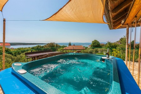Ferienwohnungen mit Meerblick auf der Insel Rab, mit gemeinschaftlicher Panorama-Terrasse, Whirlpool, Sauna und Sommerküche