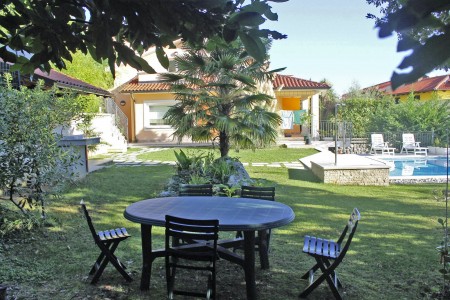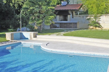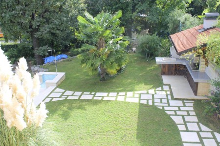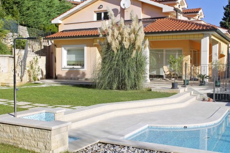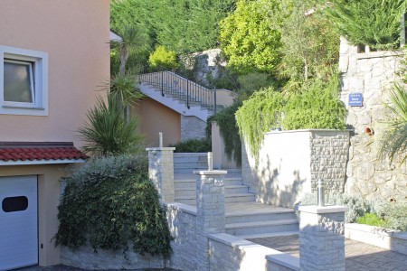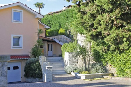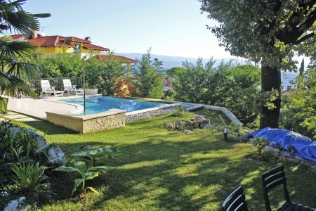 Das Haus mit zwei gemütlichen Ferienwohnungen und der Wohnung der Gastgeber liegt auf einem schönen und gepflegten, komplett eingezäunten Grundstück oberhalb des Küstenstädtchens Lovran. Von hier bietet sich ein herrlicher Ausblick auf das blaue Meer in der Kvarner Bucht mit ihren grünen Inseln. Der gepflegte Garten mit Swimmingpool (4 x 6 m), Sonnenliegen und Außendusche steht den Gästen beider Ferienwohnungen zur gemeinschaftlichen Nutzung zur Verfügung. Der in der Nähe liegende Naturpark Učka mit seiner bunten Tier- und Pflanzenwelt lädt zu ausgedehnten Wanderungen und Spaziergängen ein. Restaurant, Einkaufsmöglichkeit und auch der Strand sind bequem zu Fuß erreichbar. Von Lovran aus gelangt man über die 6 km lange Uferpromenade „Lungomare“ direkt nach Opatija, wo sich neben zahlreichen historischen Sehenswürdigkeiten Restaurants, Ausgehmöglichkeiten und viele Geschäfte befinden.