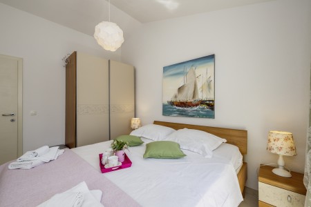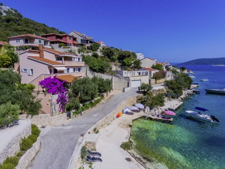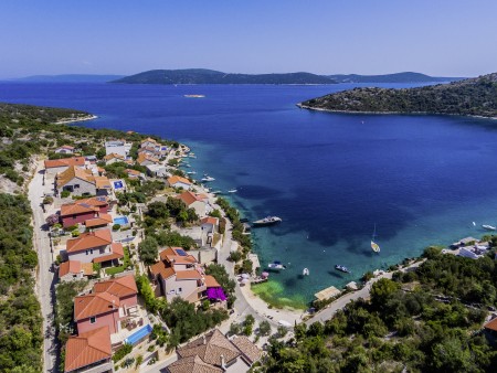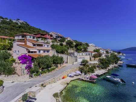 In einer malerischen Bucht, direkt am Meer gelegen, befinden sich die zwei gemütlich eingerichteten Ferienwohnungen im Haus der Vermieterfamilie. Der ruhige Fischerort liegt in einer tief eingeschnittenen Bucht, ca. 20 km von Trogir entfernt und bietet die besten Voraussetzungen für einen erholsamen Urlaub am Meer mit zahlreichen Möglichkeiten für Strand- und Wassersportbegeisterte.
