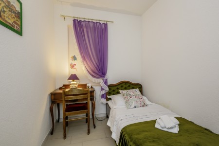 Appartement für 4-5 Personen: ca. 72 m² im Dachgeschoss, zur Saison 2015 neu eingerichtet, ein Schlafzimmer mit Doppelbett, ein Schlafzimmer mit zwei Einzelbetten, Badezimmer mit Dusche und WC, Wohnraum mit Essbereich, Klimaanlage und Schlafcouch für ein Kind bis 12 Jahre, komplett ausgestattete Küche. Außerdem, Terrasse mit Meerblick. Keine Haustiere erlaubt.