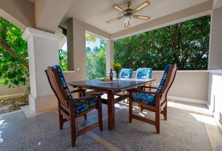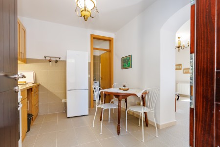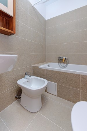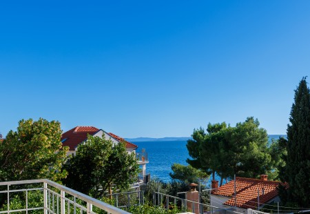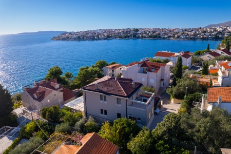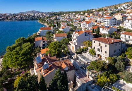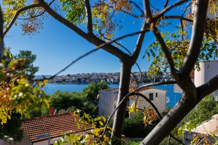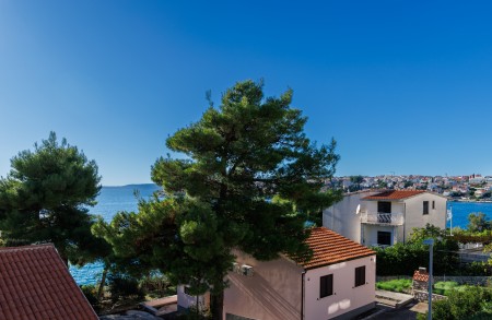 Die Ferienwohnung befindet sich im Bucht Mavarčica im Ort Okrug Gornji auf der Insel Čiovo, die durch eine Brücke mit der Altstadt von Trogir verbunden ist. Der historische Stadtkern liegt etwa 5 km entfernt und erwartet seine Besucher mit zahlreichen Sehenswürdigkeiten, einer lebhaften Hafenpromenade mit gemütlichen Cafés, romantischen Restaurants und der unverwechselbaren Atmosphäre einer mediterranen Küstenstadt. Der nächste Strand ist ca. 50 m von der Ferienwohnung entfernt. Zum Appartement führt ein asphaltierter Weg leicht bergab, typisch für die hügelige Landschaft der Insel Čiovo. Ein Restaurant befindet sich etwa 400 m entfernt, während eine Einkaufsmöglichkeit finden Sie im Ortszentrum, rund 2 km entfernt.