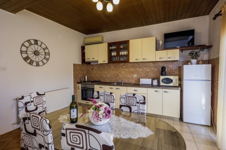 Die gepflegte Ferienwohnung mit drei Schlafzimmern befindet sich in Marina. Der kleine Ort liegt in einer geschützten Bucht zwischen Rogoznica und Trogir. Wahrzeichen der Stadt ist der imposante Wehrturm aus dem 16. Jahrhundert, heute ein kleines Hotel. Das kleine Ortszentrum mit Restaurants, Cafés und Einkaufsmöglichkeit erreichen Sie zu Fuß in wenigen Minuten. In der Umgebung von Marina gibt es zahlreiche herrliche Strände zu entdecken, die zum Bad in Sonne und Meer einladen. Nur 16 km von Marina entfernt liegt die bezaubernde Stadt Trogir. Der historische Stadtkern erwartet seine Besucher mit zahlreichen Sehenswürdigkeiten, einer lebhaften Hafenpromenade mit gemütlichen Cafés, romantischen Restaurants und der unverwechselbaren Atmosphäre einer mediterranen Küstenstadt, die in jedem Fall einen Besuch wert ist.