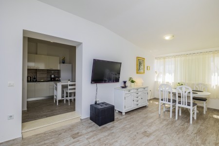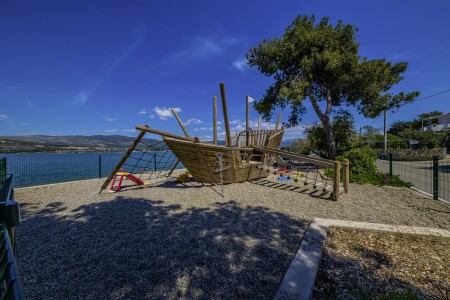 Die Ferienwohnung befindet sich im Ort Mastrinka auf der Insel Čiovo, die durch eine Brücke mit der Altstadt von Trogir verbunden ist. Der historische Stadtkern, ist ca. 4 km entfernt und erwartet seine Besucher mit zahlreichen Sehenswürdigkeiten, einer lebhaften Hafenpromenade mit gemütlichen Cafés, romantischen Restaurants und der unverwechselbaren Atmosphäre einer mediterranen Küstenstadt. Der nächste Strand ist nur 20 Meter vom Haus entfernt. Restaurant und Einkaufsmöglichkeit sind ebenfalls bequem zu Fuß erreichbar.