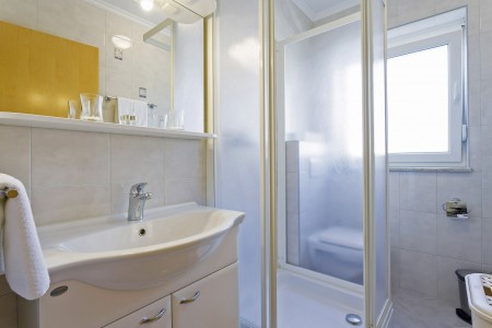 1 Appartement für 2-4 Personen AP3: ca. 48 m² in der ersten Etage, Klimaanlage, ein Doppelzimmer mit Balkon mit Meerblick, Bad/WC mit Waschmaschine, Wohn-Schlafraum mit Schlafcouch und Balkon mit Meerblick, Safe, Küchenzeile mit Backofen, Mikrowellenherd und Geschirrspülmaschine, Esstisch. An allen Fenstern und Balkontüren befinden sich Rollläden und Moskitonetze.