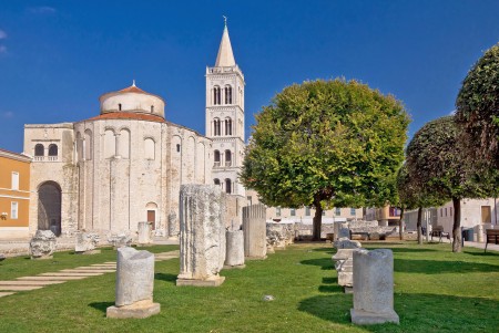 „Najlipši grad na svitu“ (die schönste Stadt der Welt) – so nennen die Bewohner von Zadar stolz ihre Stadt. Die ehemalige Hauptstadt Dalmatiens liegt auf einer Halbinsel, die von zwei Rivas gesäumt wird: die auf der dem Festland zugekehrten Seite wird einfach nur „Riva“ genannt – hier legen die Fähren und Personenschiffe an, hier bringen die Fischer allmorgendlich ihren Fang an Land. Auf der anderen, den Inseln zugewandten Seite, liegt die „neue“ Riva – hier flaniert man auf und ab, hier treffen sich die Liebespaare zum Rendezvous, und seit ein paar Jahren kann man hier den Melodien der auf der Welt einzigartigen Meeresorgeln lauschen. Zwischen diesen Rivas liegt eine der schönsten Alt-städte Dalmatiens, deren Lebensader die „Kalelarga“ ist – die autofreie Hauptstraße mit ihren Boutiquen und Cafés. Rechts und links von ihr – malerische Gassen, in denen die „Klapa“ aus reiner Lebensfreude ihre Lieder anstimmt, und prächtige historische Bauten wie die Rundkirche Sveti Donat, die Kathedrale Sveta Stošija, das Römische Forum…Verfügbarkeit