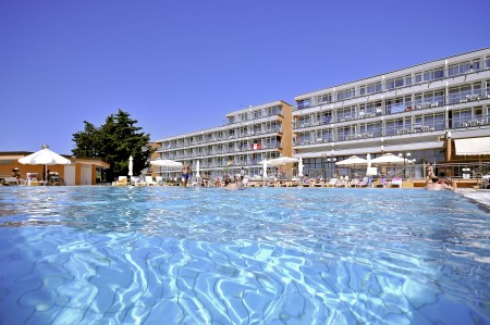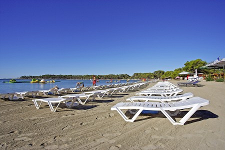 Strand: etwa 150 m zum flach abfallenden Stein- und Kiesstrand mit betonierten Liegeflächen und Beachbar.