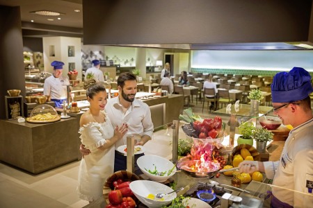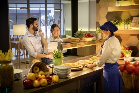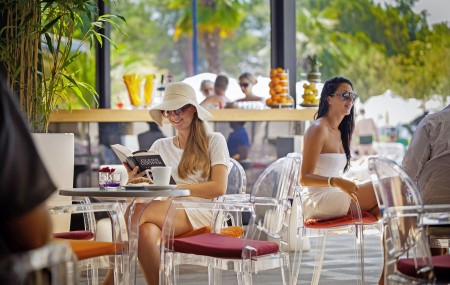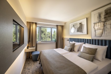 Verpflegung: Frühstücksbuffet. Halbpension mit Abendbuffet gegen Aufpreis buchbar. Im Zeitraum 01.06.-31.08. Livemusik, 1x wöchentlich Themen-Abendessen mit istrischen Spezialitäten und Fischabend. Im Rahmen der gebuchten Halbpension besteht vom 01.07.–31.08. 1x wöchentlich die Möglichkeit das reguläre Abendessen vom Buffet gegen einen Barbecue-Abend im benachbarten Grillrestaurant einzutauschen (beschränkte Anzahl an Plätzen; vorherige Reservierung empfohlen). Vom 01.06.-01.09. außerdem freitags "Sweet Welcome" mit Begrüßungsgetränk und reichhaltiger Auswahl an Süßspeisen.