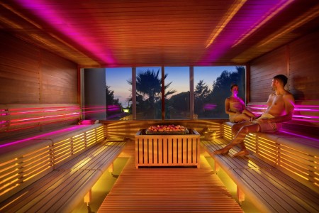 Wellness-Center: Finnische Sauna, Dampfbad, Biosauna, Eisbrunnen, Whirlpool, Entspannungsbereich, Massagen, Aromatherapie, kosmetische Körper- und Gesichtspflege, Solarium, Fitness-Studio. Benutzung des Wellness-Centers sowie Leistungen gegen Bezahlung.