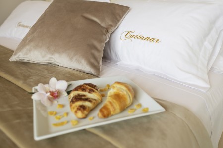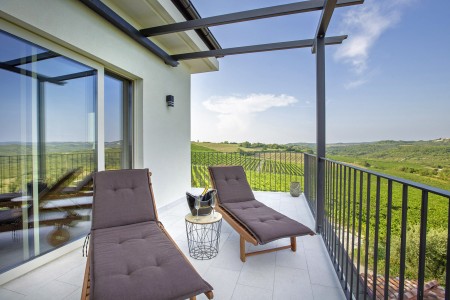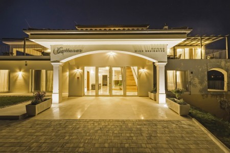 Das imposante Weingut der Familie Cattunar liegt im Westen der Halbinsel Istrien in der Nähe der kleinen Orte Nova Vas und Brtonigla unweit von Novigrad und blickt auf eine lange Tradition im Weinbau zurück. Auf 56 Hektar Land werden neben autochthonen Rebsorten wie Malvazija, Teran und Muškat auch international bekannte Reben wie Chardonnay, Cabernet Sauvignon, Merlot und Sauvignon Blanc kultiviert. Der fruchtbare Boden und die klimatischen Gegebenheiten bieten die besten Voraussetzungen für die Herstellung hervorragender Weine, die bereits mehrfach international ausgezeichnet wurden. So erhielt im Jahr 2018 der hier produzierte „Malvazija Collina 2015“ in London die Goldmedaille von Decanter. Die neue Wine Residence liegt inmitten von Weingärten und Olivenhainen und bietet Unterkunft in elf luxuriös eingerichteten Zimmern und Suiten, nicht nur für Weinliebhaber, sondern auch für alldiejenigen, die das grüne Istrien hautnah und aktiv erleben möchten. Die vorteilhafte Alleinlage der Residence bietet eine Oase der Ruhe, während die lebhaften Küstenorte wie Novigrad (5 km) und Poreč (25 km) mit dem Auto leicht zu erreichen sind.