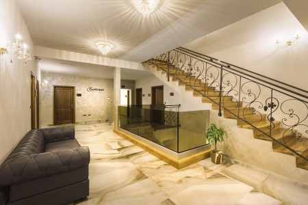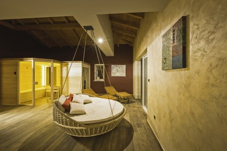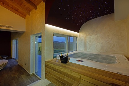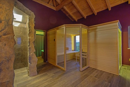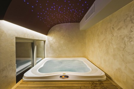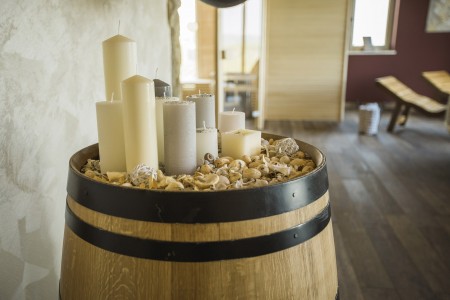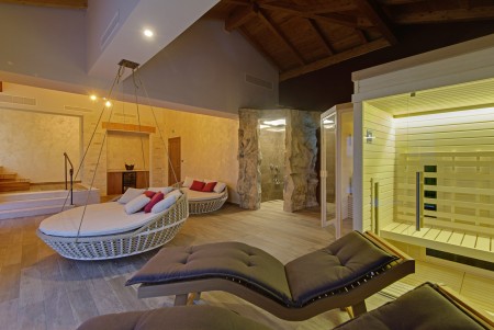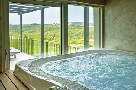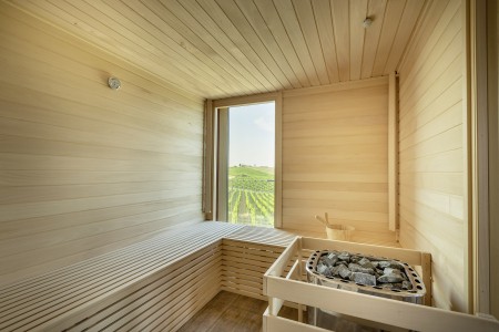 Wellness-Center: Der moderne Wellness-Bereich mit einzigartigem Ausblick auf die Weinberge ist rund um die Uhr geöffnet und bietet einen Fitnessraum, Finnische Sauna, Infrarot-Sauna, Chromotherapieraum mit Wasserbett und Himalaya Salzsteinen, sowie einen Whirlpool mit Sternenhimmel.