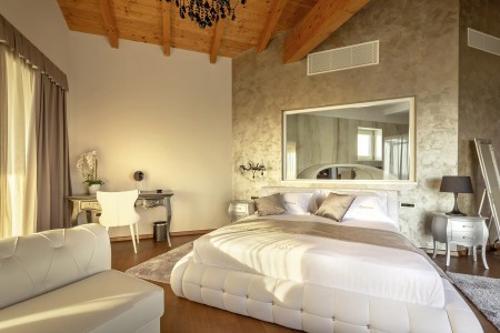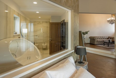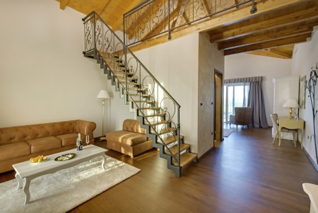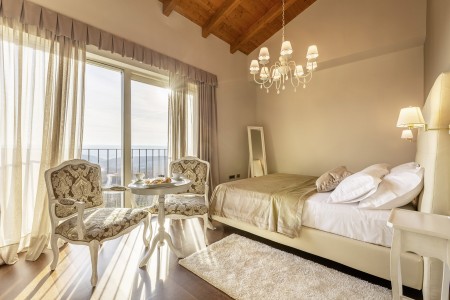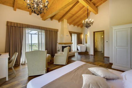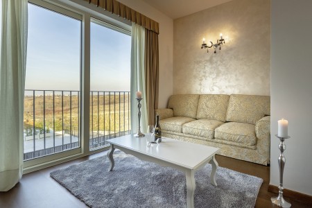 Deluxe Suite: ca. 40-50 m², geräumig und luxuriös eingerichtet ist jede Deluxe Suite einzigartig gestaltet und bietet Klimaanlage, Flachbild-TV, Minibar, Safe, WiFi-Internet (kostenlos), Badezimmer mit Dusche und WC, sowie eine Terrasse mit herrlichem Blick auf die Weinberge.