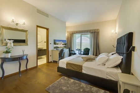 Junior Suite: ca. 35 m², komfortabel und geschmackvoll eingerichtet bieten die Junior Suiten Klimaanlage, Flachbild-TV, Minibar, Safe, WiFi-Internet (kostenlos), Badezimmer mit Dusche und WC, sowie eine Terrasse mit herrlichem Blick auf die Weinberge.