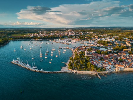 Novigrad, das antike Emonia, entwickelte sich dank seines geschützten Hafens schon früh zu einer Kolonie griechischer Seefahrer, später errichteten die Römer hier ihre befestigte Stadt Civitas Novum. Vom 6. bis zum 19. Jahrhundert Bischofssitz, liegt Novigrad auf einer kleinen Insel, die im 18. Jahrhundert mit dem Festland verbunden wurde. Das mittelalterliche Straßennetz, die alten Festungsmauern und die Türme, die einst zur Verteidigung des Städtchens dienten, sind bis heute erhalten geblieben. Der Ort hat sich längst auf die Bedürfnisse des modernen Tourismuseingestellt: gemütliche Restaurants, Cafés und Boutiquen in der Altstadt, daneben moderne und komfortable Hotels, ein Yachthafen, großzügige Sportanlagen und lange, flachabfallende Fels- und Kiesstrände.