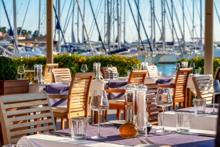 Das kleine und sehr komfortable Hotel liegt direkt am Yachthafen, etwa 300 m vom Zentrum von Novigrad entfernt. Alle Zimmer sind geräumig und mit Elementen der Seefahrt geschmackvoll eingerichtet.
