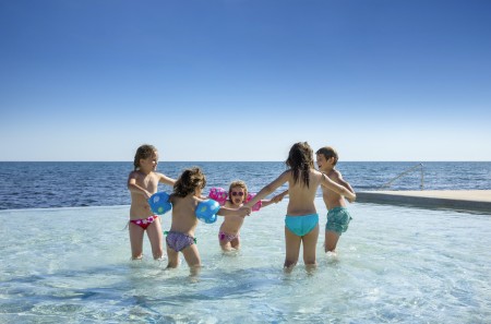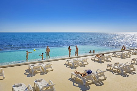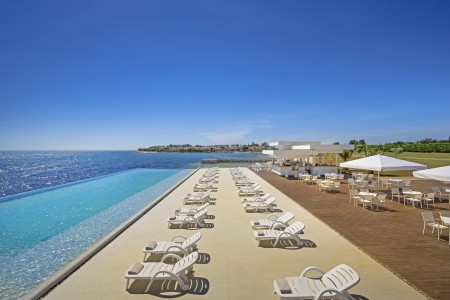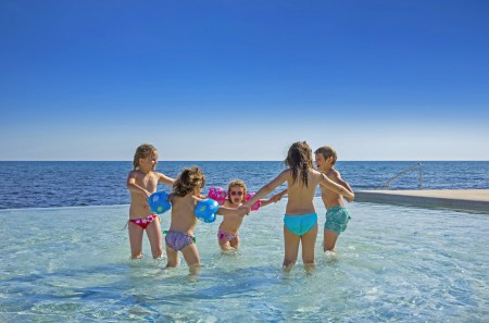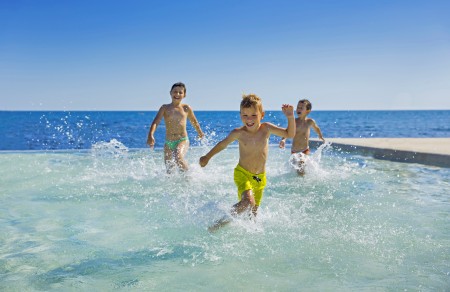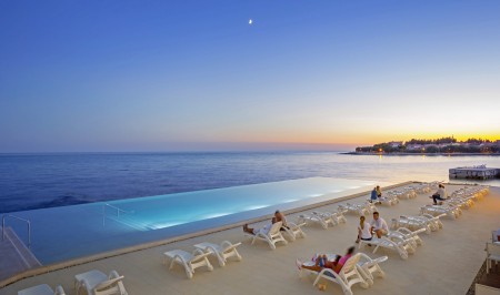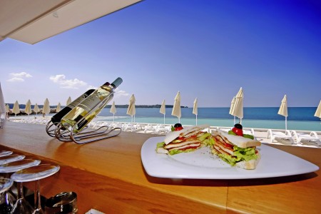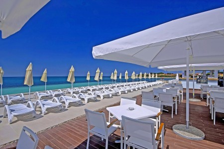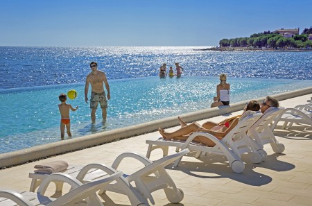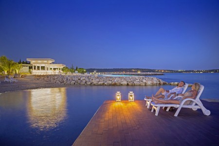 Strand: Zum flach abfallenden Kiesstrand mit Grillrestaurant, Beachbar, teilweise beschatteten Liegewiesen, Duschen, Liegestuhl- und Sonnenschirmverleih sind es 50 m durch den Hotelpark. Am Strandabschnitt vor dem benachbarten Aminess Vival Maestral Hotel befindet sich die „Punto Mare Fun & Beach Zone". Es erwartet Sie eine große Sonnenterrasse mit Liegestühlen und Sonnenschirmen, zwei Meerwasser-Swimmingpools direkt am Meer, Unterhaltungsprogramm mit Animation für alle Altersgruppen (montags, mittwochs und donnerstags), Cocktails, Snacks/Pizza, Eis, Kinderzone, DJ-Musik/Live-Musik.