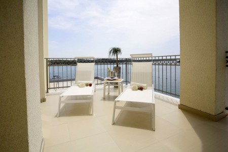 Das historische Gebäude, dessen Geschichte bis ins Jahr 1910 zurückreicht, liegt direkt an der Spitze der Altstadt-Halbinsel und gegenüber der Insel Sveti Nikola. Es verbindet historische Architektur, modernen Komfort in zeitlos eleganten Zimmern und Suiten.